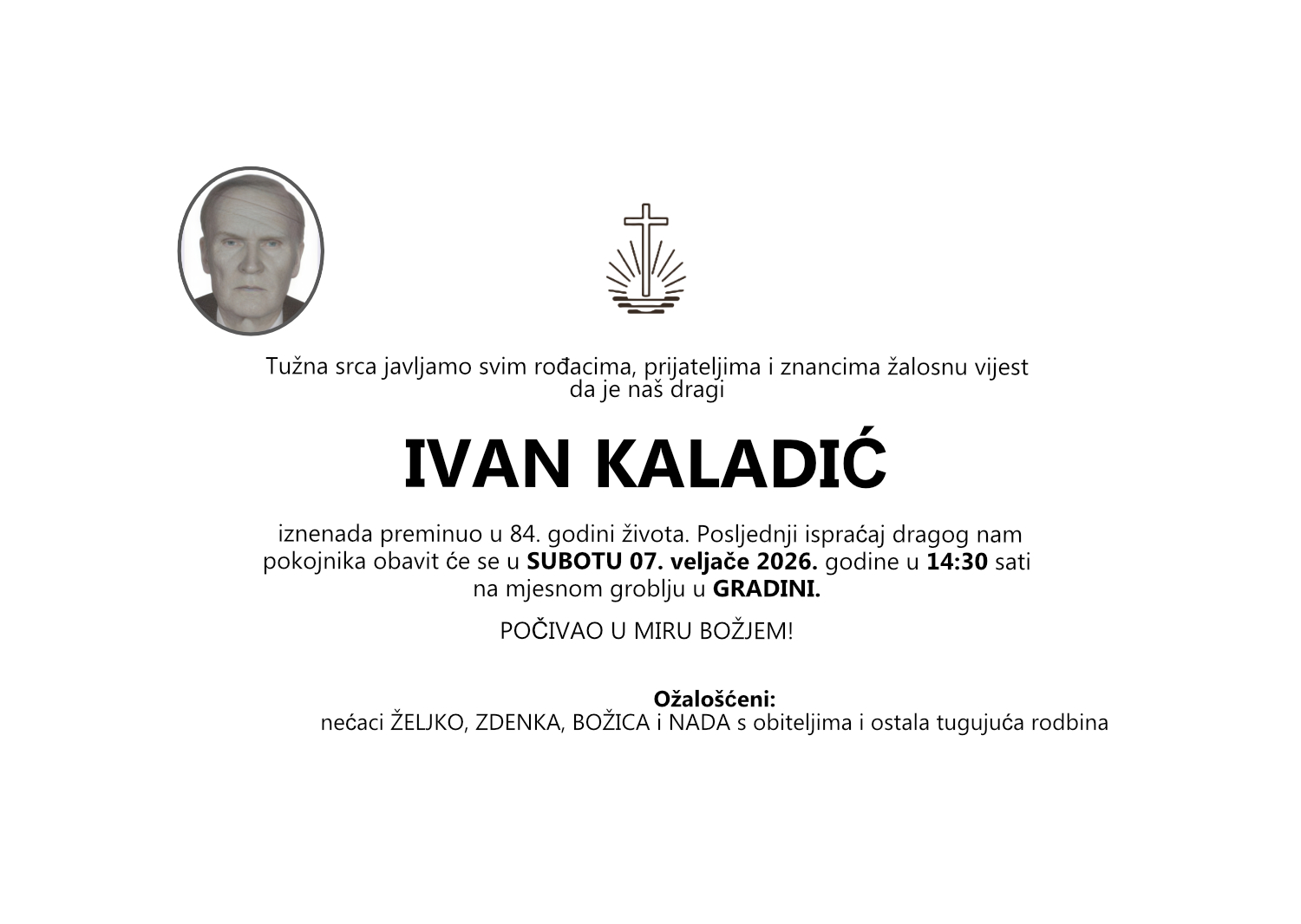 Ivan Kaladić, subota 07.02.2026. u 14:30h, Gradina
