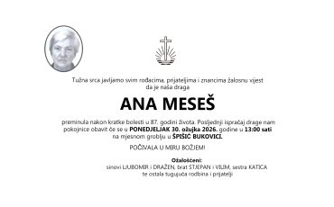 ANA MESEŠ, ponedjeljak 30.03.2026.god u 13:00 h, Špišić Bukovica