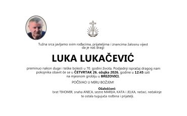 Stjepan Puček, ponedjeljak 30.03.2026.god. u 13:00 h, Lukač