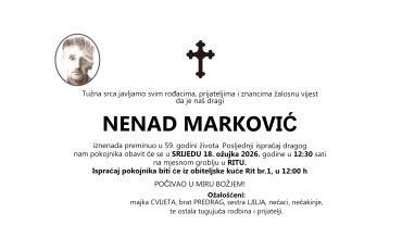 NENAD MARKOVIĆ, srijeda, Rit u 12:30 h.