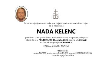 Nada Kelenc, ponedjeljak 16.03.2026. u 14:30h, Virovitica