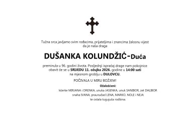 Dušanka Kolundžić, srijeda, 11.03.2026 u 14:00 h, Đulovac