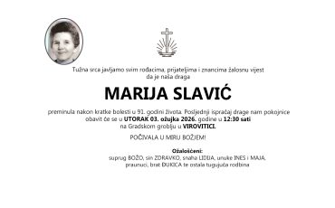 Marija Slavić, utorak 03.03.2026. u 12:30h Virovitica