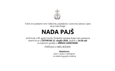 Nada Pajš, četvrtak, 12.03.2026 god. u 14:30 h, Zrinj Lukački