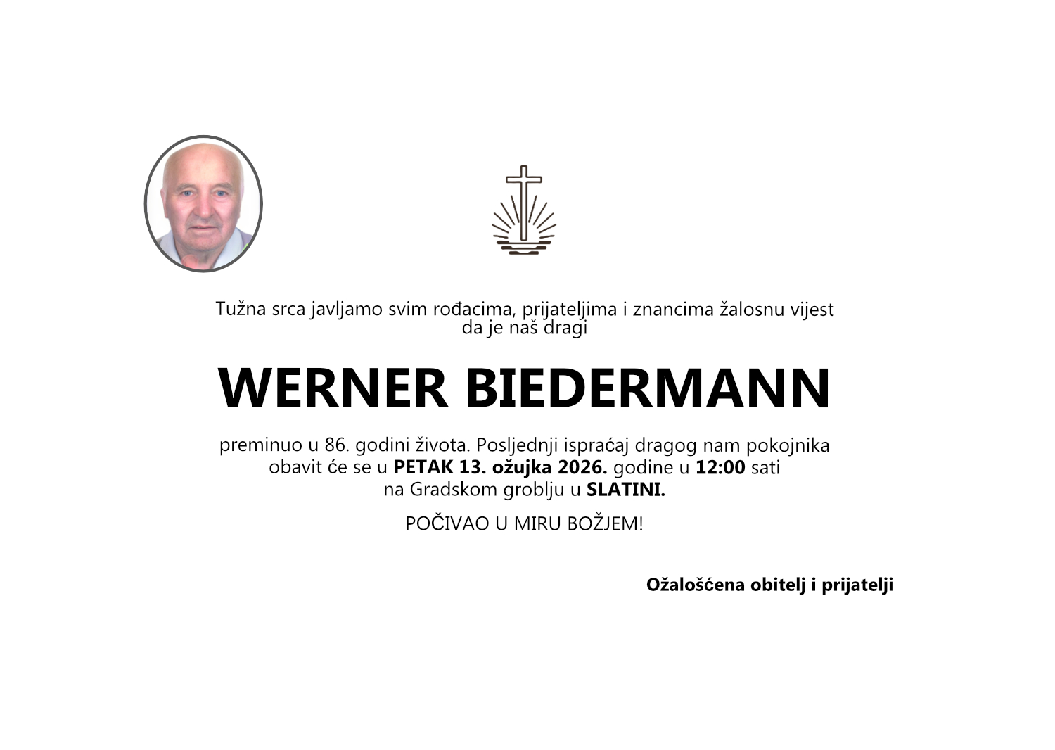 Werner Biedermann, petak 13.03.2026. u 12:00h, Slatina